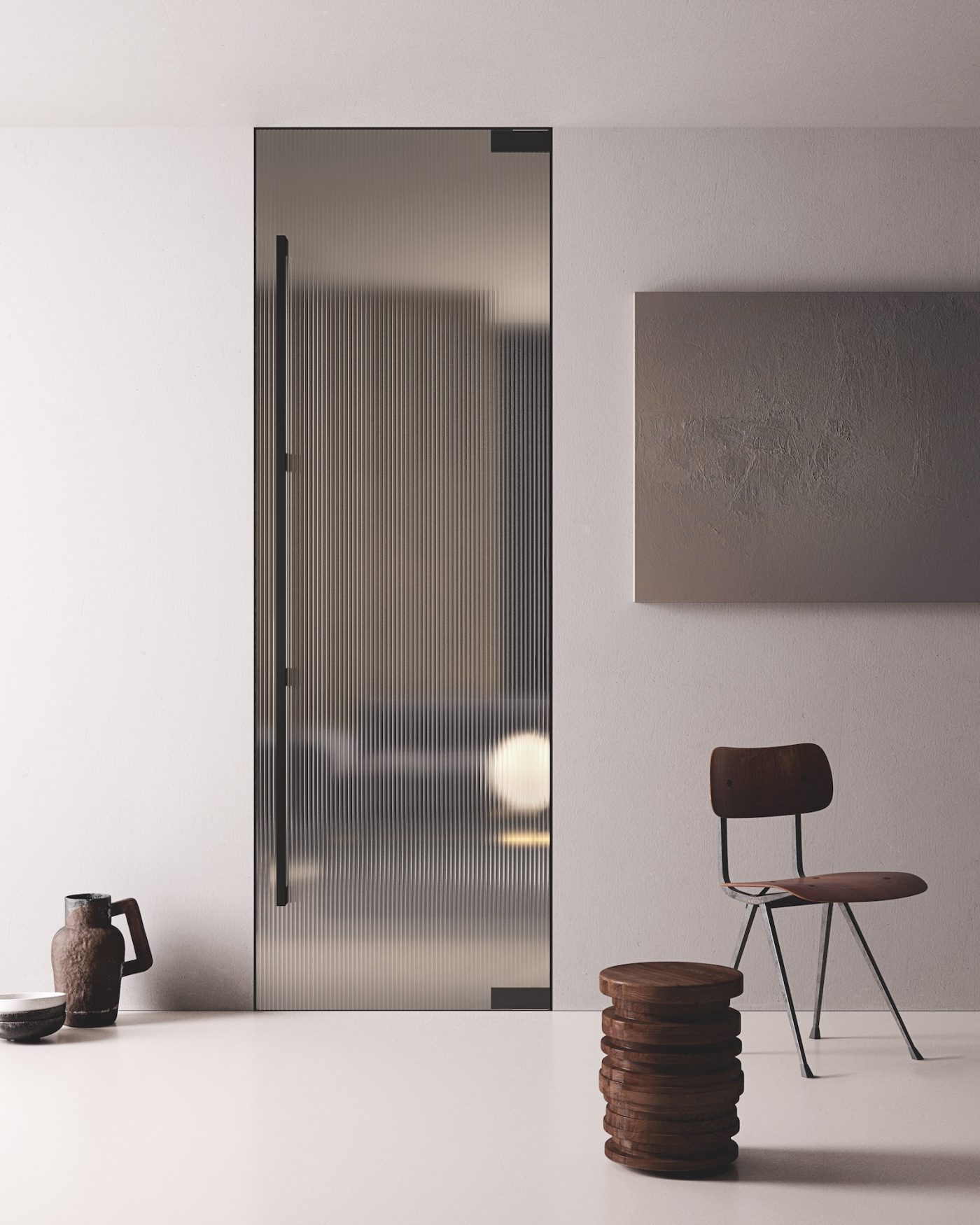 Les portes pivotantes Filomuro sont des solutions à fort impact au style minimaliste, disponibles en verre, en bois ou avec un vantail à peindre. Ces portes intérieures sont caractérisées par des charnières spéciales ou pivots, qui remplacent les charnières plus traditionnelles installées entre le vantail et le cadre. Ce type d’ouverture s’adapte bien aux portes caractérisées par de grands vantaux, dont le système de pivotement sert justement à en soutenir le poids dans le temps. Dans les versions avec vantail extra-large, il est conseillé d’opter pour un matériau comme le verre, plus léger que le bois et donc plus adapté à ce type d’exigence. En raison précisément de leur taille, les portes pivotantes Filomuro peuvent également être combinées avec des poignées qui soulignent leurs lignes élancées.