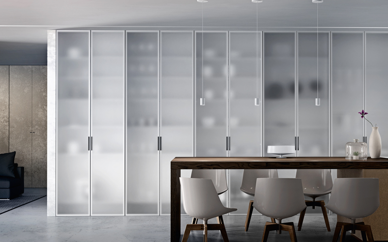 Il sistema Miria presenta inoltre tipologie di allestimento interno per soddisfare le esigenze più disparate e cinque diverse tipologie di anta e profilo. Nello specifico: