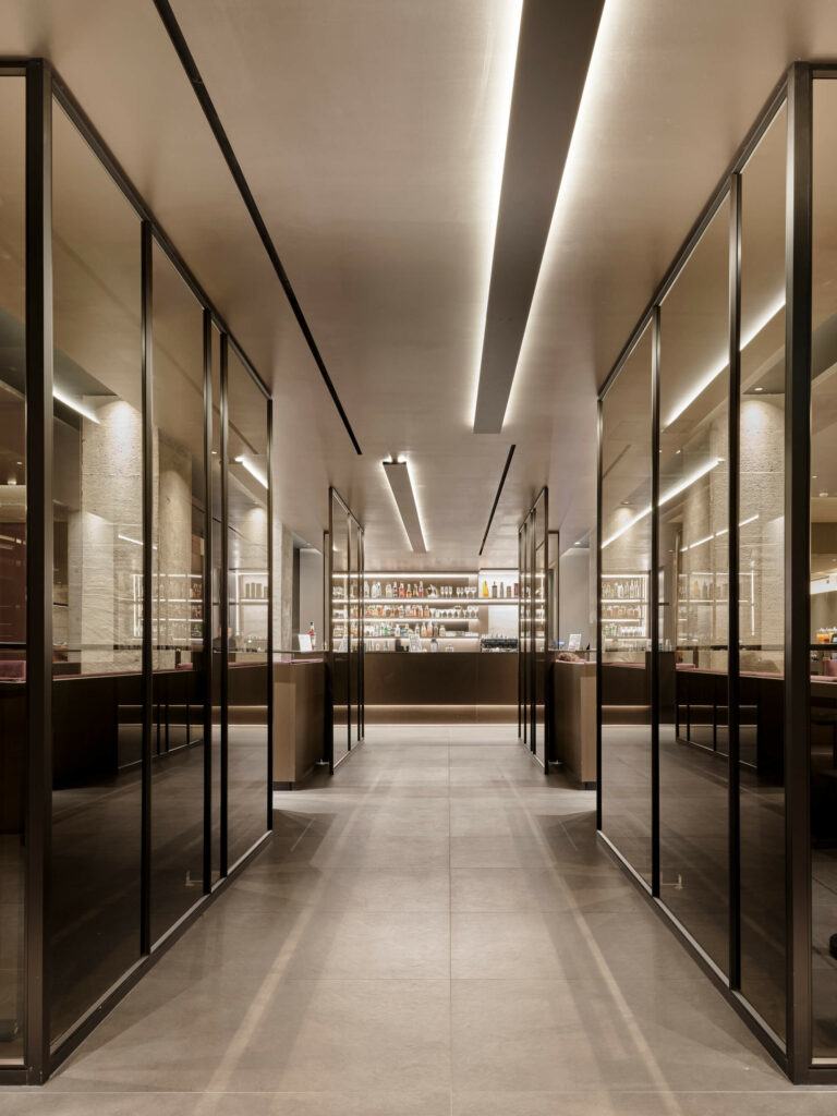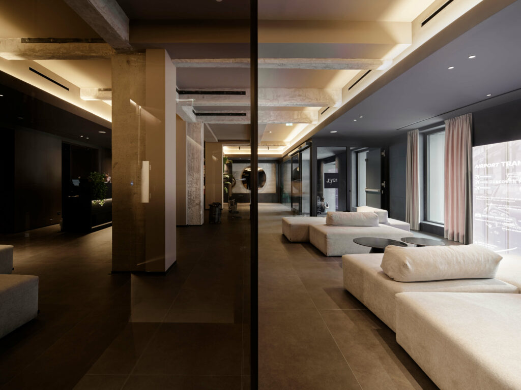 Le geometrie materiche, le trasparenze e il ritmo della luce compongono un ambiente fluido, accogliente e raffinato. Le aree comuni diventano così spazi narrativi, capaci di esprimere l’identità della struttura attraverso trasparenze, pieni, vuoti e superfici tattili.